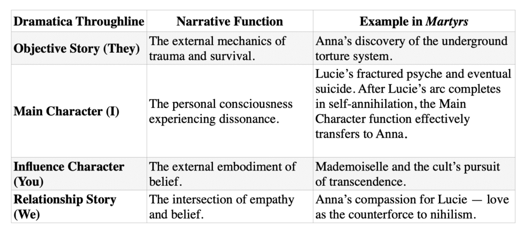 Within the context of the Unified Theory, Martyrs stands as an extreme, yet coherent, expression of story as field. Its horror is existential in nature, rather than psychological or supernatural, the dissonance of consciousness itself seeking contact with the infinite.