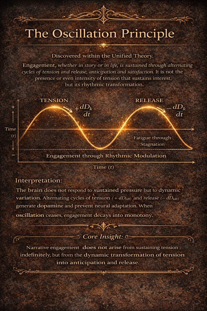 A narrative that maintains constant tension without modulation does not intensify engagement; it accelerates its erosion. The mind adapts, prediction stabilizes, and dissonance loses its charge. What begins as suspense resolves into monotony.