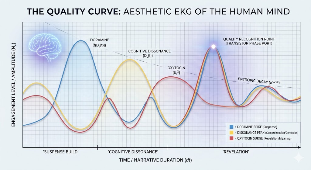 In essence, the Quality Curve is the aesthetic EKG of the human mind. It charts not just what happens in a story, but what happens to us as we experience it. When the three waves synchronize, we call it engagement; when they transcend, we call it art.